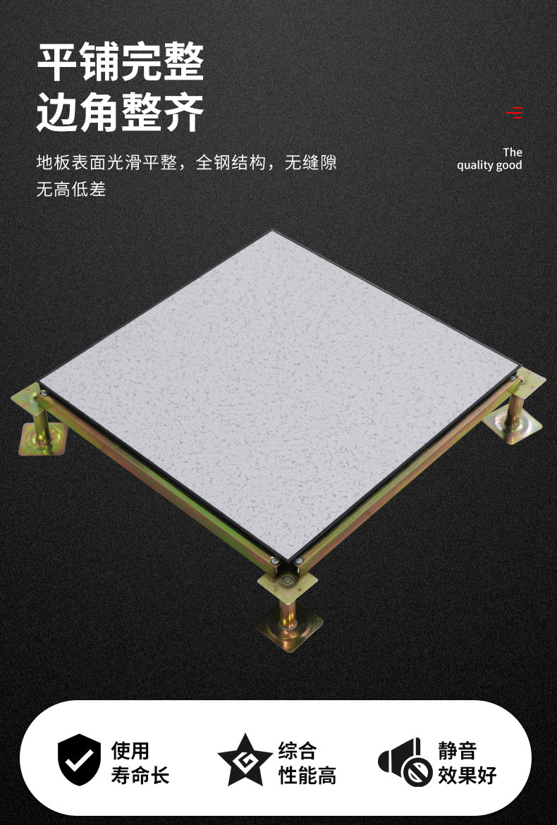 采用上海寶鋼集團優(yōu)質合金冷軋鋼板,經拉伸后點焊成形。外表經磷化后進行噴塑處理,內腔填充發(fā)泡水泥,上表面粘貼高耐磨麻面防靜電三聚氫胺貼面(HPL)、PVC貼面或陶瓷磚面層、四周鑲嵌導電邊條。